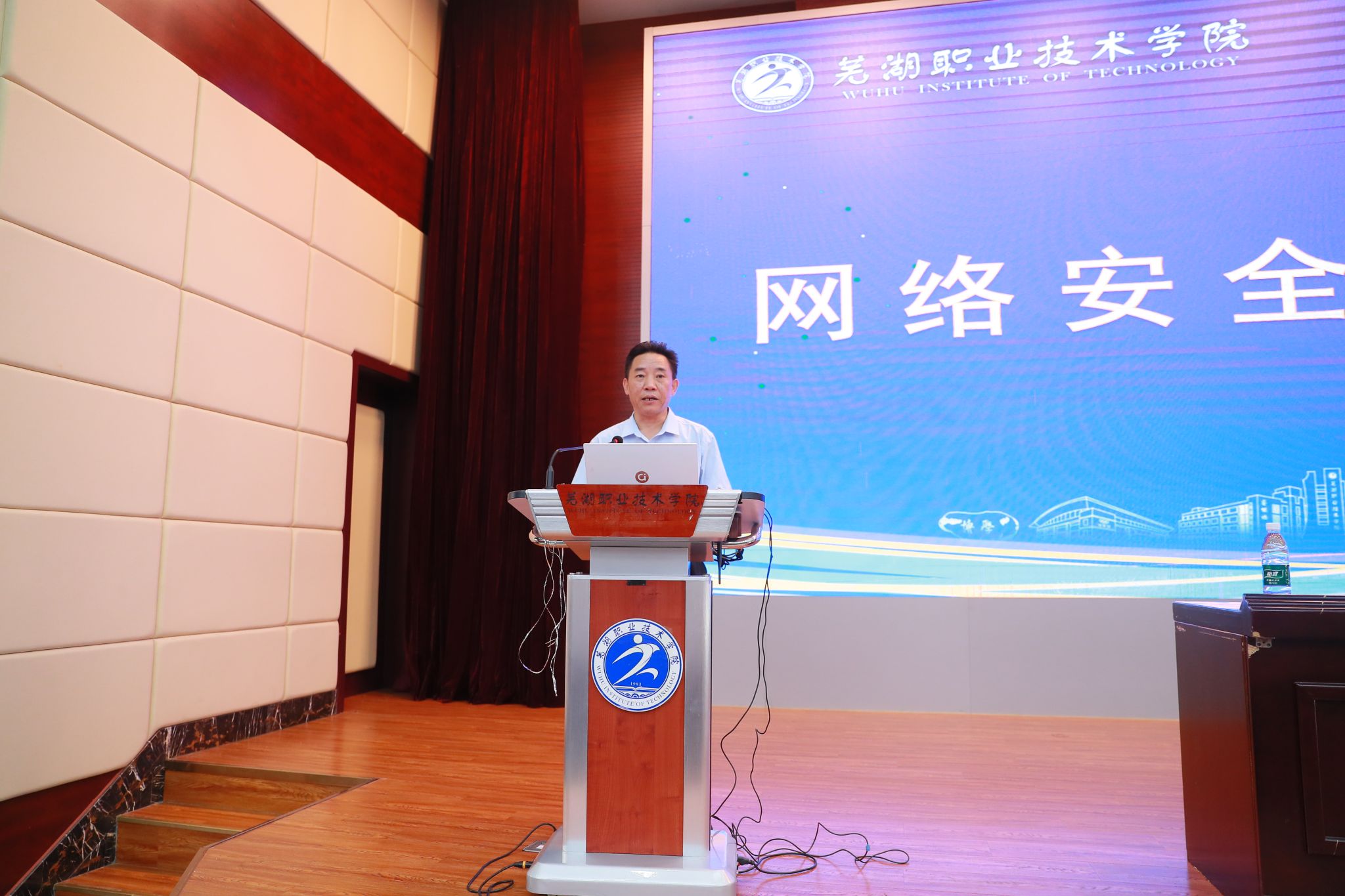 本次培训邀请网络安全工作资深专家、芜湖市公安局网络安全保卫支队支队长葛奚祥主讲。葛奚祥以“网络安全为人民,网络安全靠人民”为题,围绕国际国内网络安全形势、当前高校网络安全风险以及防范举措与对策等三个方面进行分析解读,宣传普及网络安全对于国家安全和经济运行的重要作用,就网络安全与人民群众的密切关系以及人民群众在维护网络安全中的重要地位进行说明,特别是对于当前高校师生如何防范网络风险以及有针对性的对策举措,结合有关案例做了深入浅出的解析。